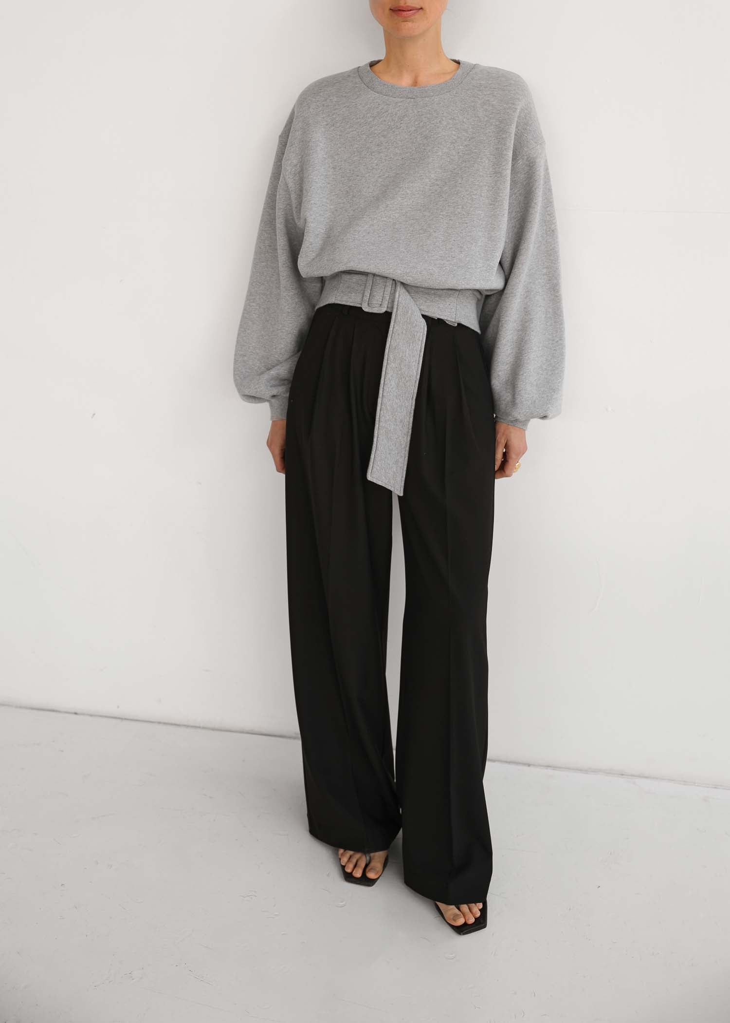 sweater met lange mouwen en ronde hals, riempje in de taille