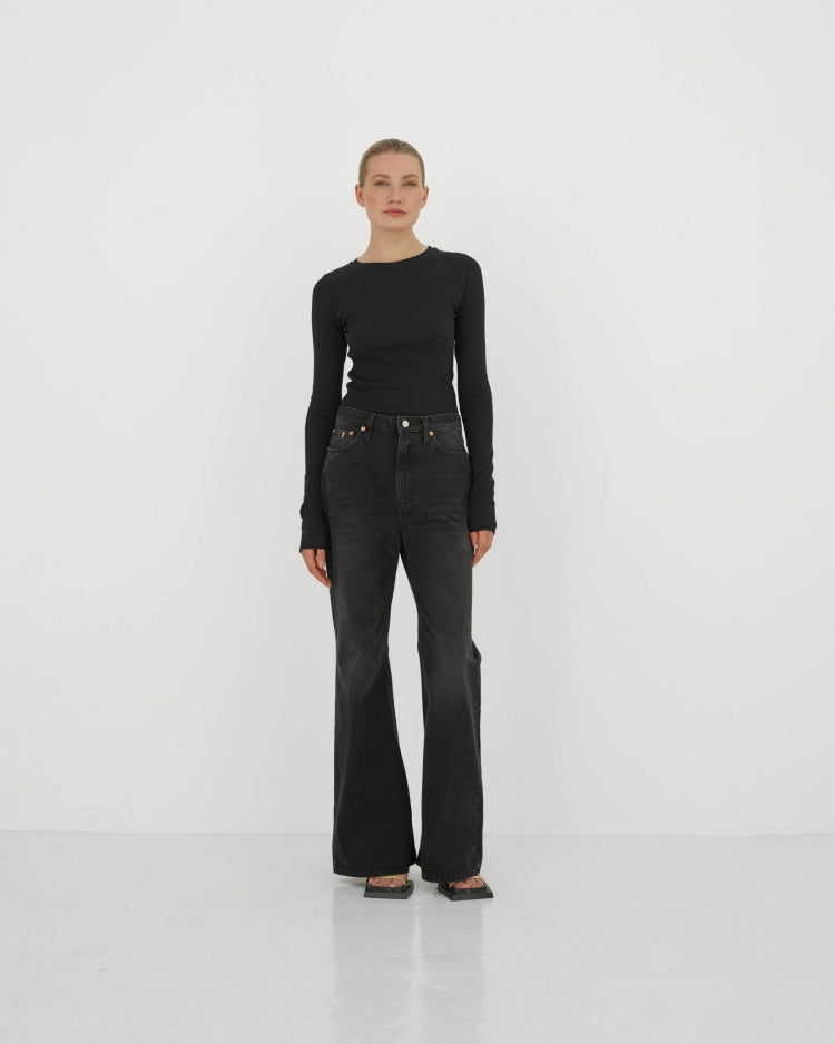 Kaz rib top valt aansluitend en heeft lange mouwen