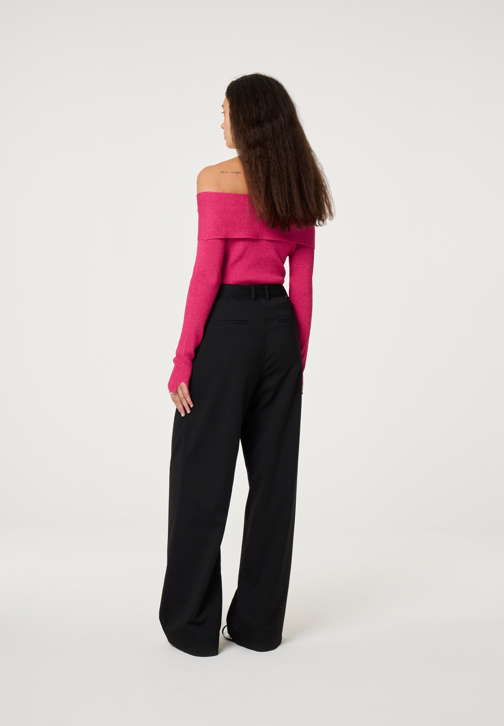 Glittertop met blote schouders.