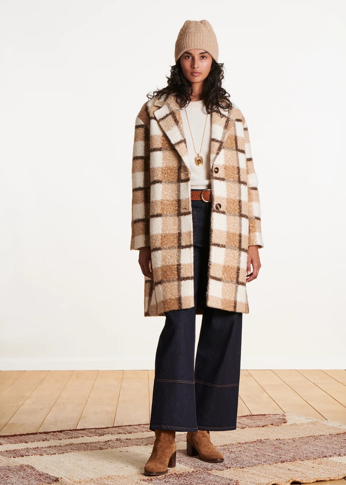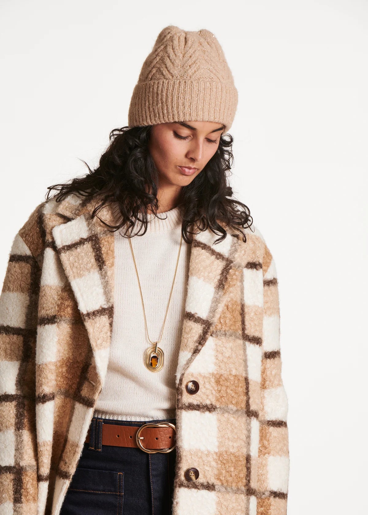 Gebreide muts met pailletten.